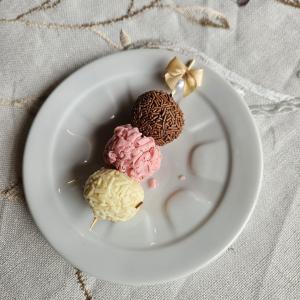 Brigadeiro, brigadeiro de chocolate branco e brigadeiro de morango. R$ 18,00